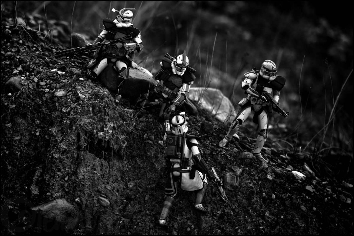 Afin de représenter la violence des combats entre l'US Marine et les forces hostiles, l'artiste Matthew Callahan a décidé de les comparer aux personnages "stormtrooper" de Star Wars, subissant comme l'élite américaine, une guerre continuelle faites de débris, irascibilité et agressivité. Cette de série de photos faites au format miniature (dont on en a pas l'impression), se nomme galactic_warfighter, photographié avec un talent de composition et sens du détails hors normes.