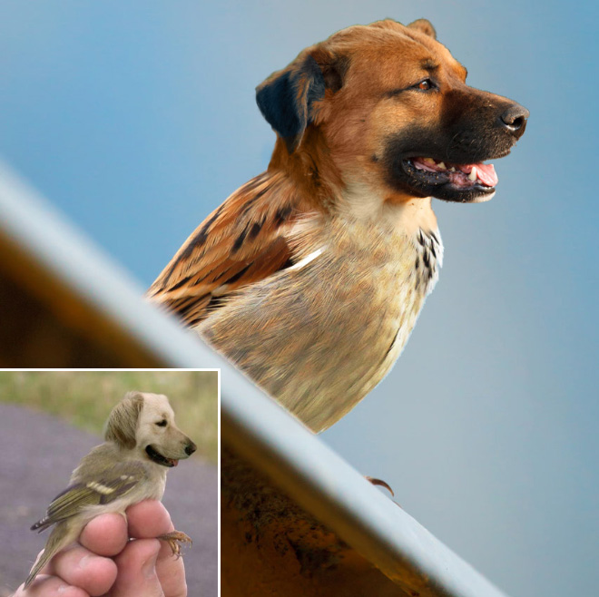 Difficile de trouver de nouvelles espèces de nos jours. Alors autant imaginer à quoi pourraient ressembler de nouveaux animaux en n'en fusionnant certains. C'est le cas de cette rubrique qui vous montre la fusion entre des chiens et des oiseaux, pour donner naissance à des Perroquets-Allemands ou des Coqs Retreiver. Une compilation encore bien WTF qui vous montre le résultat d'une fusion entre des chiens et des oiseaux.