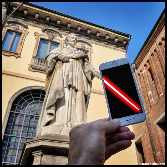 François Dourlen, est un photographe qui a eu la bonne idée d'utiliser son smartphone pour intégrer des personnages de la pop culture dans des photographies légères et insolites. Grâce à un angle parfait et une photographie de personnage issus de BD, de films, ou de série TV, cet artiste donne véritablement vie au paysage qui l'entoure. Il met alors en scène les personnages de la pop culture dans tous les décors qui l'entoure, Le Doc de retour vers le futur dans une vraie horloge, Lucky Luke à cheval sur les statues de Paris, bref, François Dourlen fait preuve d'une grande imagination et utilise de la meilleure des façons son smartphone pour intégrer la pop culture dans la ville et nous offrir des clichés insolites entre le réel et la fiction.