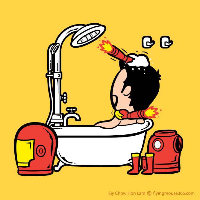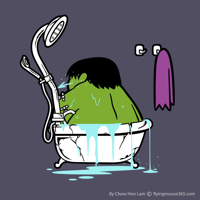 Les personnages de la pop culture font souvent l'objet de nombreux détournements. Aujourd'hui, on pénétre leur intimité pour voir leur façon de prendre un bain. L'artiste Malaisien Chow Hon Lam a imaginé les personnages de la pop culture dans leur bain. Cette série d'illustrations met en évidence les pouvoir de chacun des personnages dans des dessins humoristiques. Vous verrez ainsi les problèmes que peut rencontrer Hulk dans sa baignoire, ou les avantages que peut tirer Wolverine à prendre un bain avec ses griffes. Un total de 20 personnages issus de la pop culture vous dévoilent leur façon de prendre un bain. Pour retrouver plus d'illustration de l'artiste : c'est là que ça se passe.