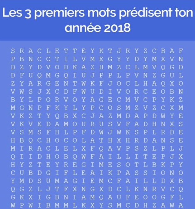 Découvre à quoi va ressembler ton année 2018 avec les trois premiers mots que tu trouves :