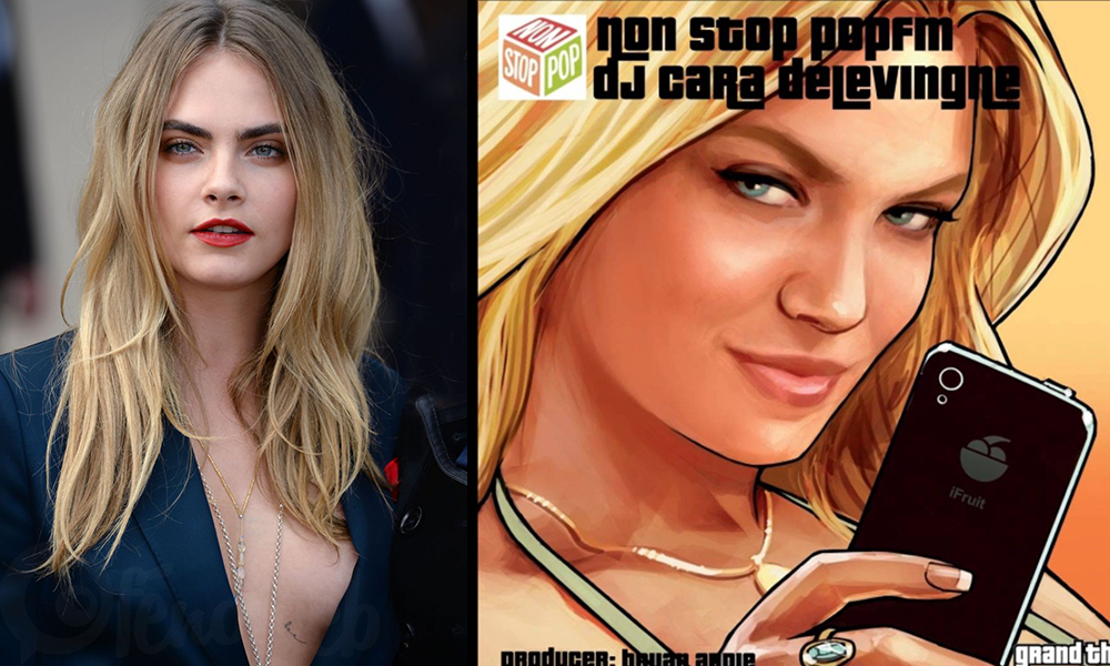 11. Cara Delevingne | GTA 5 (Dj NON STOP FM) | Photo droite: Kate Upton