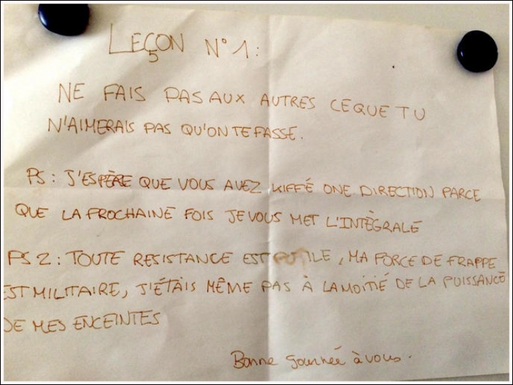 Il n'est pas toujours évident de vivre en société, cohabiter avec ses voisins peu par exemple se révéler une épreuve très complexe. Respecter vos voisins en faisant le moins de bruit possible, ne pas écouter la musique trop fort, éviter les soirées alcoolisées qui n'en finissent pas, fermer les fenêtres si madame a une fâcheuse tendance à crier à la mort lors du coït, bref tout autant de chose qui font qu'il n'est jamais simple de trouver le parfait équilibre entre vous et vos voisins. La série de photos qui arrive va une nouvelle fois vous prouver tout ça. Des messages de voisins irrésistibles qui prêtent à sourire. On sent nettement l'agacement de certain à bout de nerfs, qui n'ont pas d'autres moyens de signaler leur mécontentement par un message des plus explicites dans le hall de l'immeuble. On vous a préparé un top des meilleurs messages du voisinage.